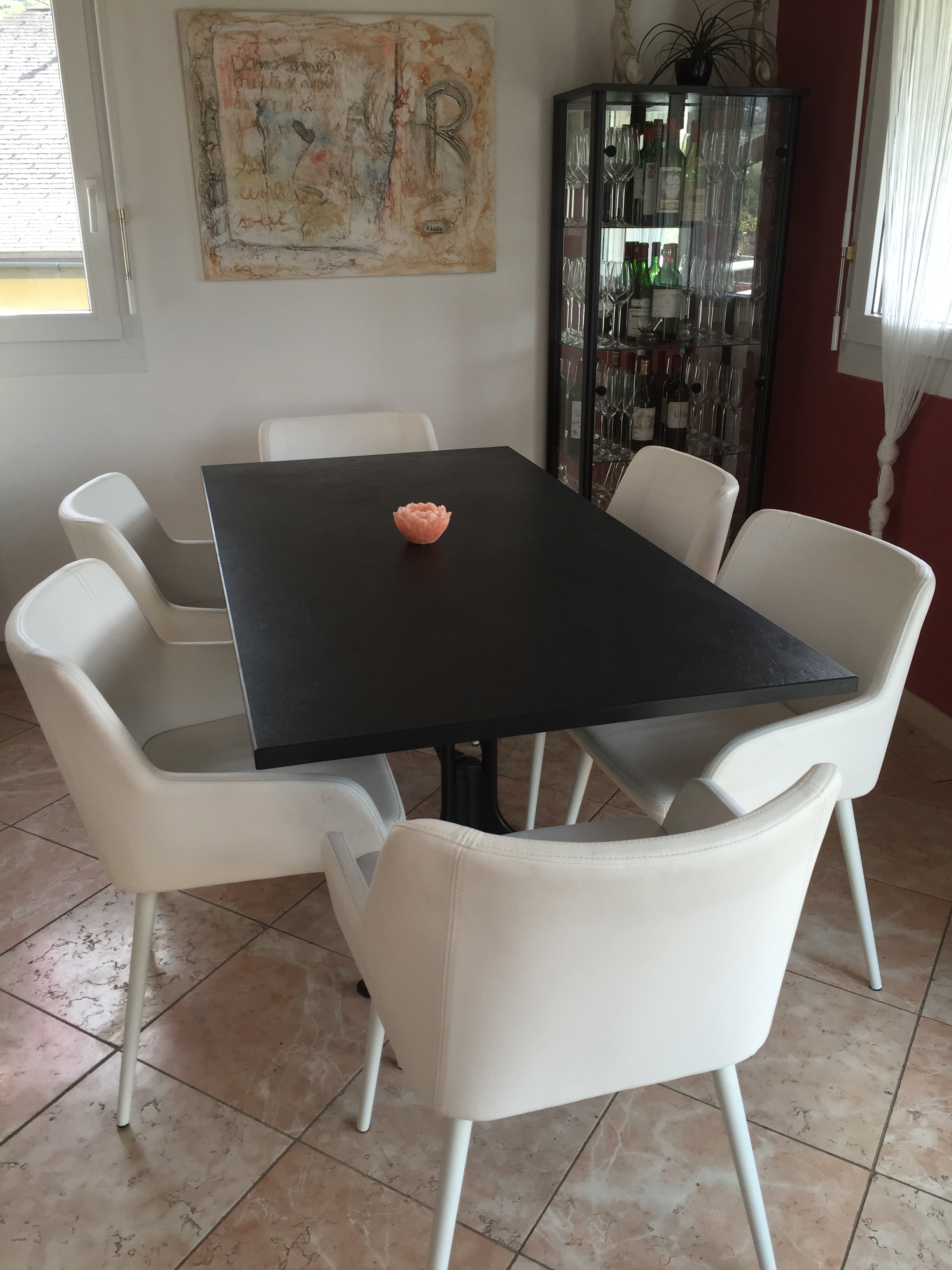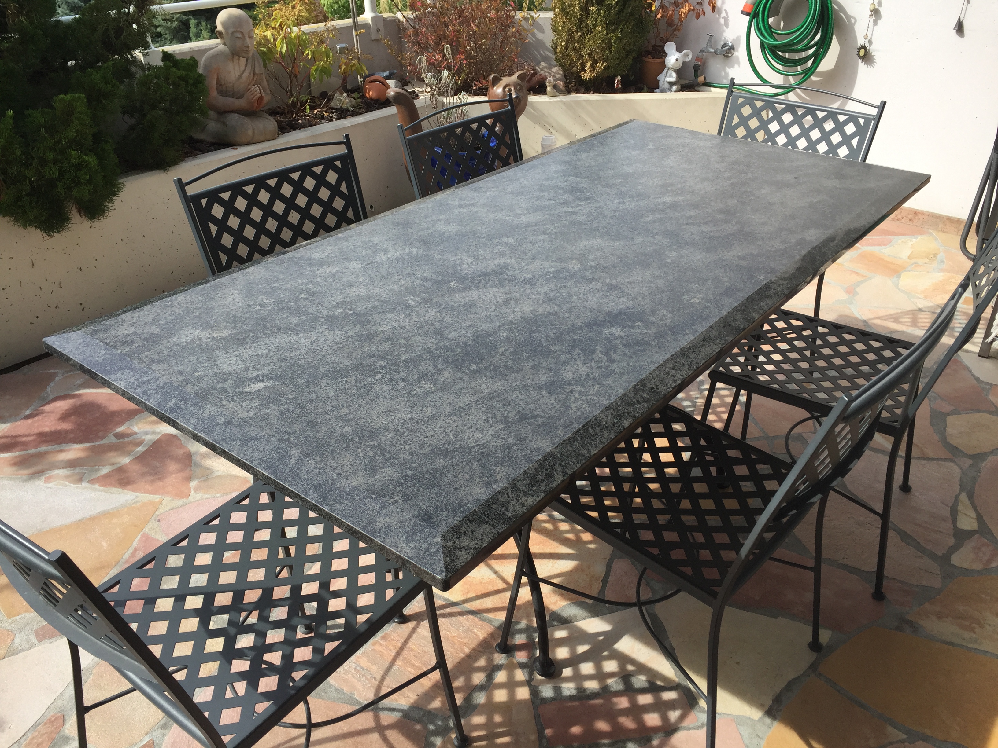 Table ardoise noire et dallage Rosa Perlino satiné